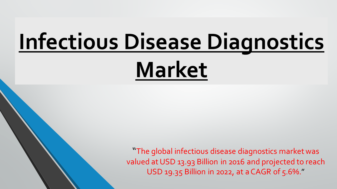 The base year considered for the study is 2016, and the forecast for the market size is provided for the period between 2017 and 2022. Growth in this market is primarily driven by the increasing global prevalence of infectious diseases, shift in focus from centralized laboratories to decentralized point-of-care testing, and growth in funding for research on infectious disease diagnostics