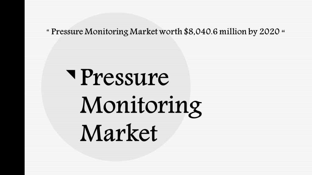According to research report “Pressure Monitoring Market By by Application (Respiratory, Glaucoma, Dialysis), Product (Device (Blood Pressure, Intracranial Pressure, Intraocular Pressure), Accessory), Procedure (Invasive), End User (Hospital, ASC, Diagnostic) – Global Forecast to 2020″, provides a complete summary of the major drivers, restraints, challenges, opportunities, current market trends, and various strategies influencing the pressure monitoring market along with estimates and forecasts of the revenue and market share analysis.