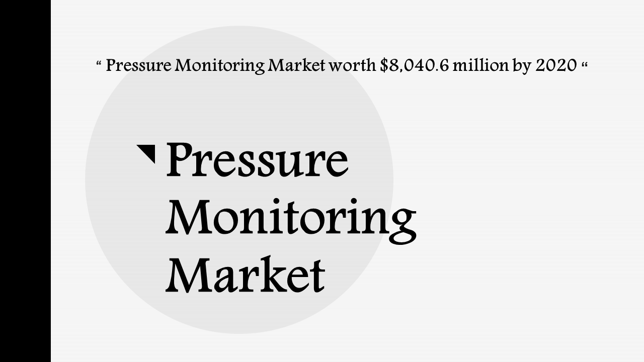 The pressure monitoring market is expected to reach USD 8,040.6 Million by 2020 from USD 6,300.0 Million in 2015, growing at a CAGR of 5.0% from 2015 to 2020. Global market offers a favorable approach for monitoring of various kinds of pressures in the different parts of the body. Pressure monitoring plays an important role in detecting the health problems of a patient. The major fluctuations of pressure in the vital areas of the body may cause various chronic and acute diseases such as diabetes, cardiac arrest, and glaucoma.