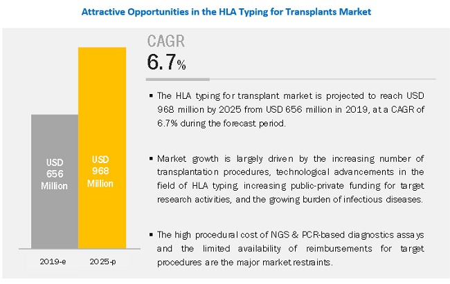 [193 Pages Report] The HLA typing for the transplants market is expected to reach USD 968 million by 2025 from USD 656 million in 2019, at a CAGR of 6.7%. North America accounted for the largest share of the HLA typing for transplants market in 2019.